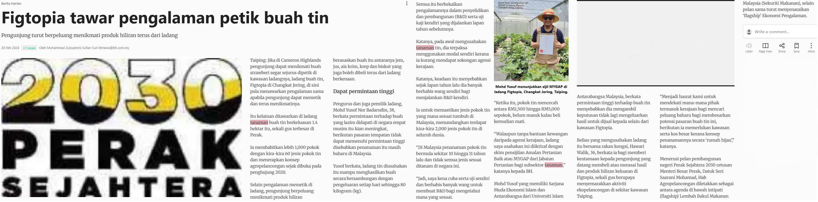 Muhammad Zulsyamini Sufian Suri (2024) Figtopia tawar pengalaman petik buah tin. Berita Harian. |