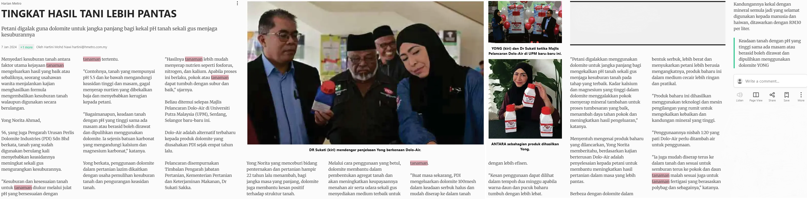 Hartini Mohd Nawi (2024) Tingkat hasil tani lebih pantas. Harian Metro. |