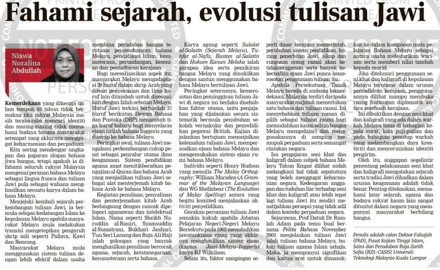 Niswa Noralina Abdullah (2019) Fahami sejarah,evolusi tulisan jawi. Berita Harian. |