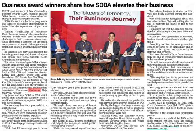 Starbiz (2025) Business award winners share how SOBA elevates their business. The Star Malaysia. |