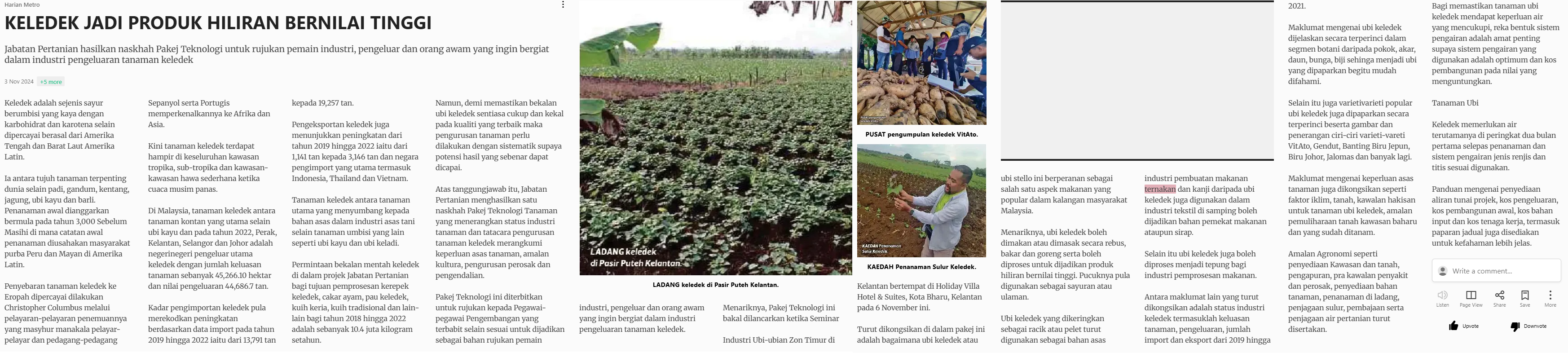 Harian Metro (2024) Keledek jadi produk hiliran bernilai tinggi. Harian Metro. |