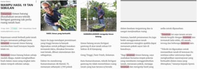 Hidayatidayu Razali (2024) Mampu hasil 19 tan sebulan. Harian Metro. |