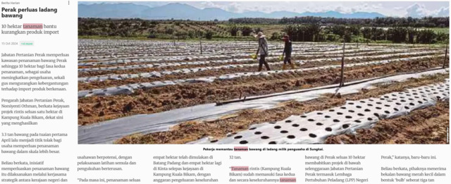 Bernama (2024) Perak perluas ladang bawang. Berita Harian. |
