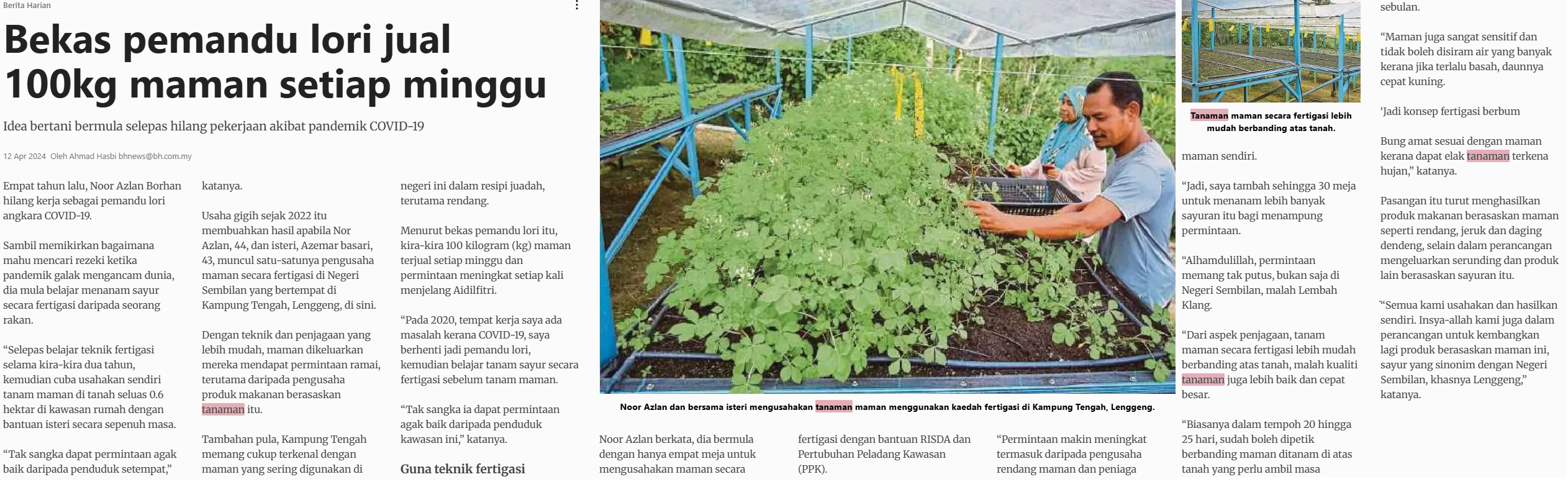 Ahmad Hasbi (2024) Bekas pemandu lori jual 100kg maman setiap minggu. Berita Harian. |