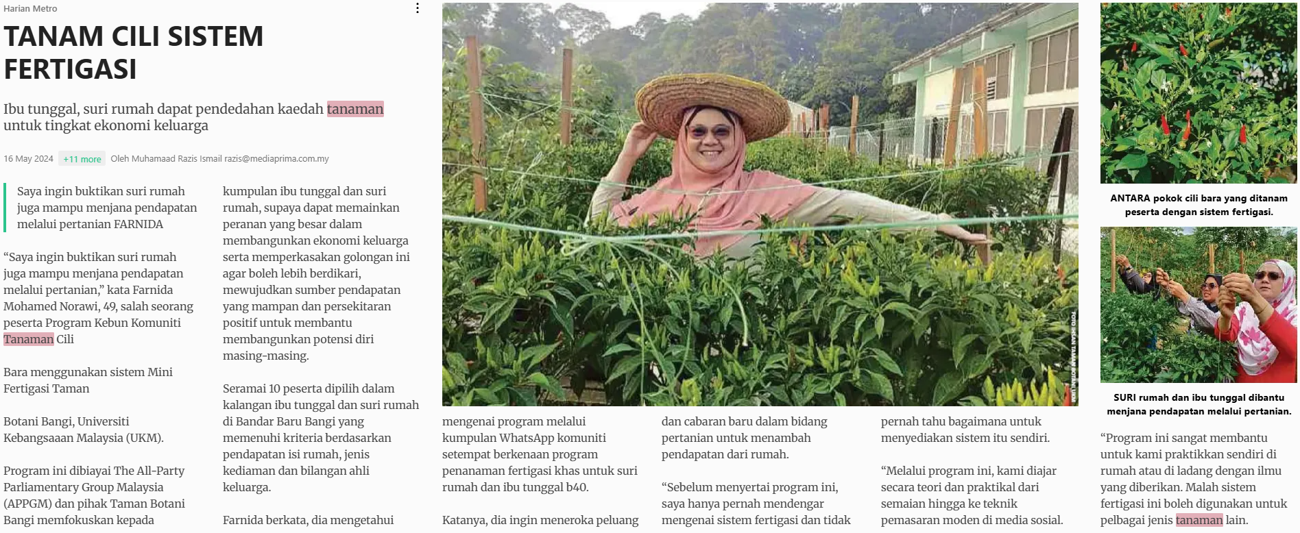Muhamaad Razis Ismail (2024) Tanam cili sistem fertigasi. Harian Metro. |