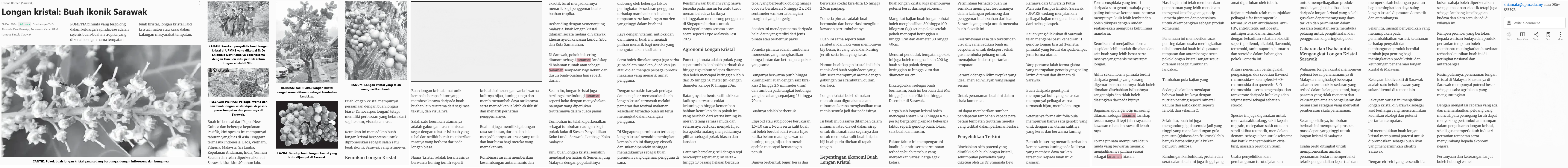 Ts Dr Shiamala Devi Ramaiya (2024) Longan kristal: Buah ikonik Sarawak. Utusan Borneo (Sarawak). |