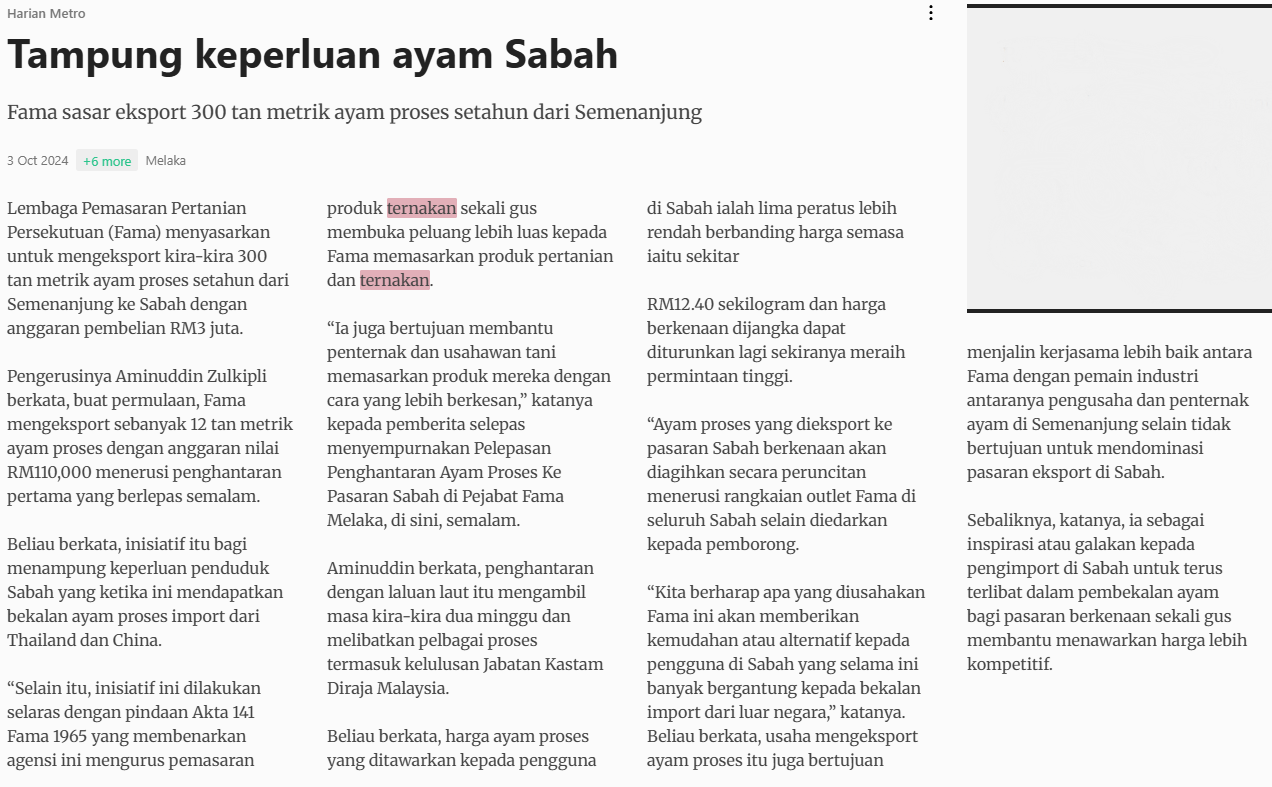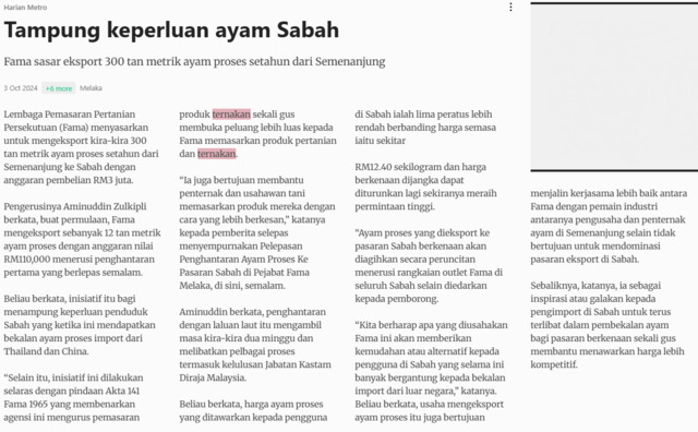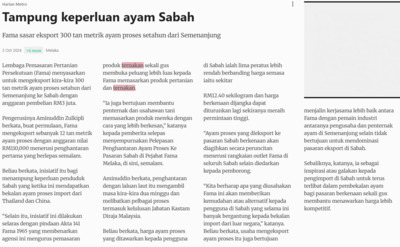 Harian Metro (2024) Tampung keperluan ayam Sabah. Harian Metro. |