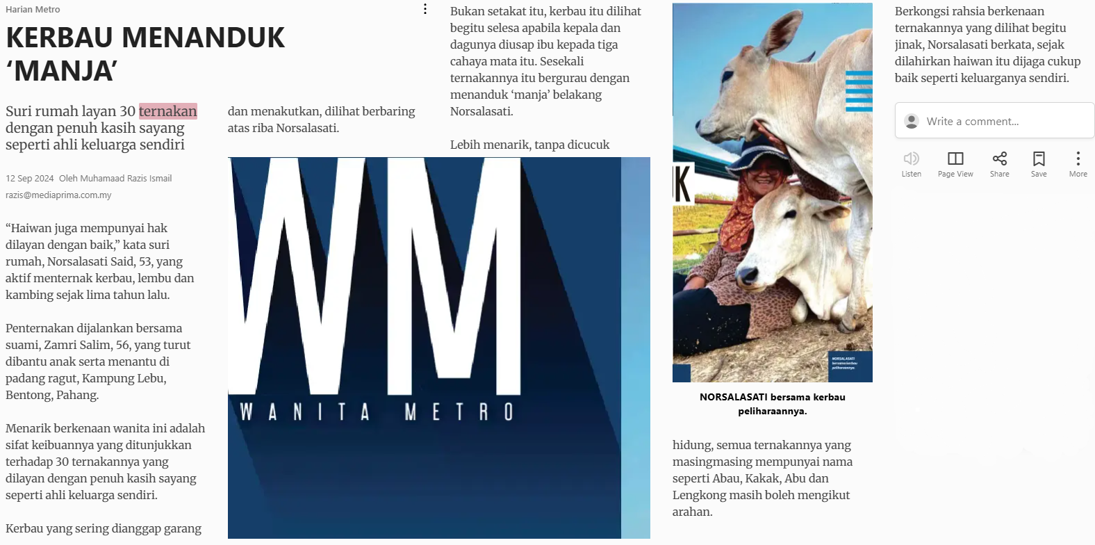Muhamaad Razis Ismail (2024) Kerbau menanduk 'manja'. Harian Metro. |