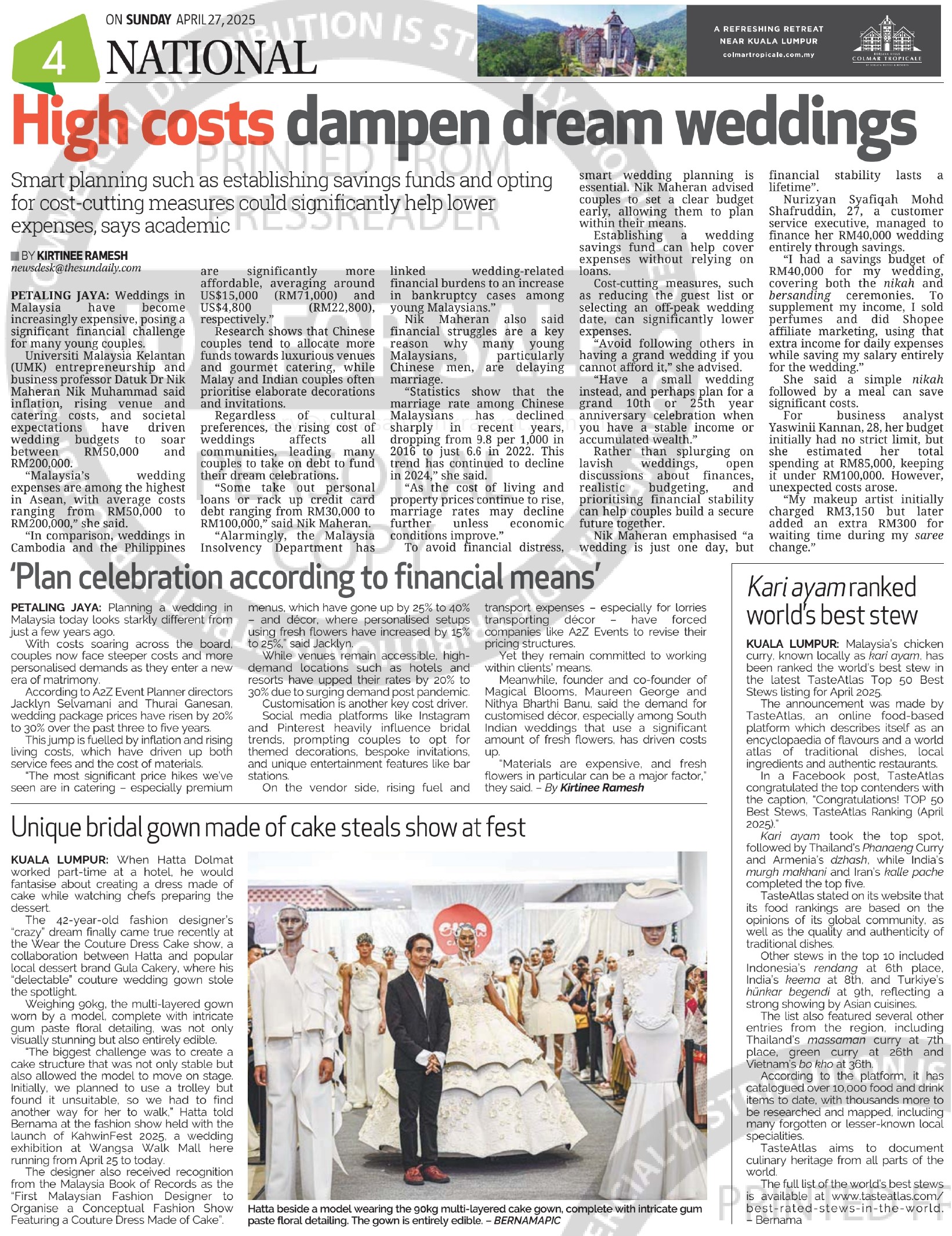 Ramesh, Kirtinee (2025) High costs dampen dream weddings. The Sun (Malaysia). |