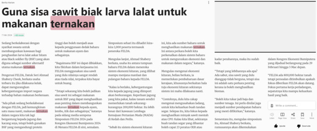 Berita Harian (2024) Guna sisa sawit biak larva lalat untuk makanan ternakan. Berita Harian. |