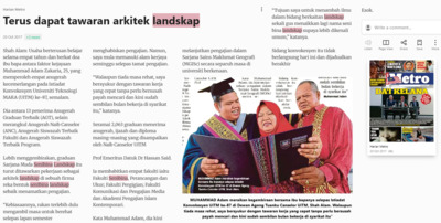 Harian Metro (2017) Terus dapat tawaran arkitek landskap. Harian Metro. |