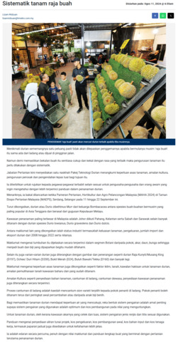Lizam Ridzuan (2024) Sistematik tanam raja buah. Harian Metro. |
