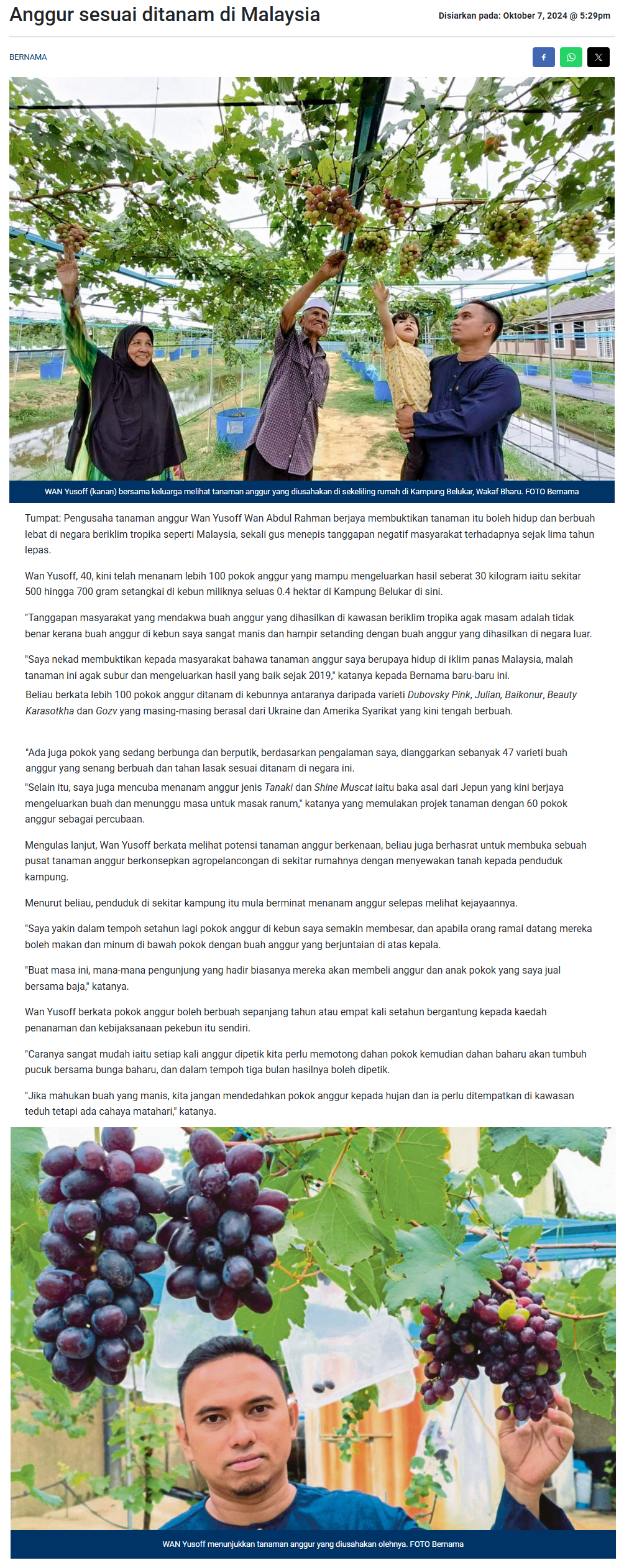 Bernama (2024) Anggur sesuai ditanam di Malaysia. Harian Metro. |
