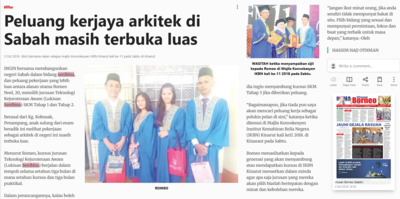 Utusan Borneo (2018) Peluang kerjaya arkitek di Sabah masih terbuka luas. Utusan Borneo. |