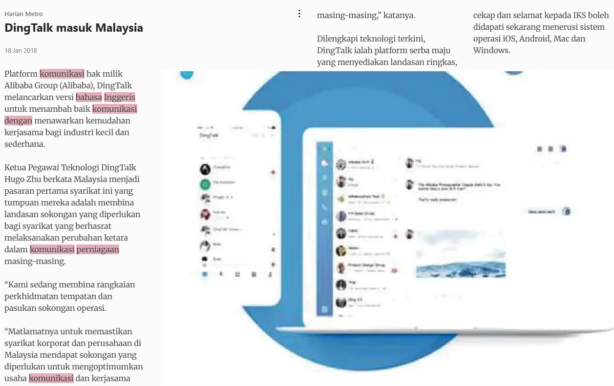 Harian Metro (2018) DingTalk masuk Malaysia. Harian Metro. |