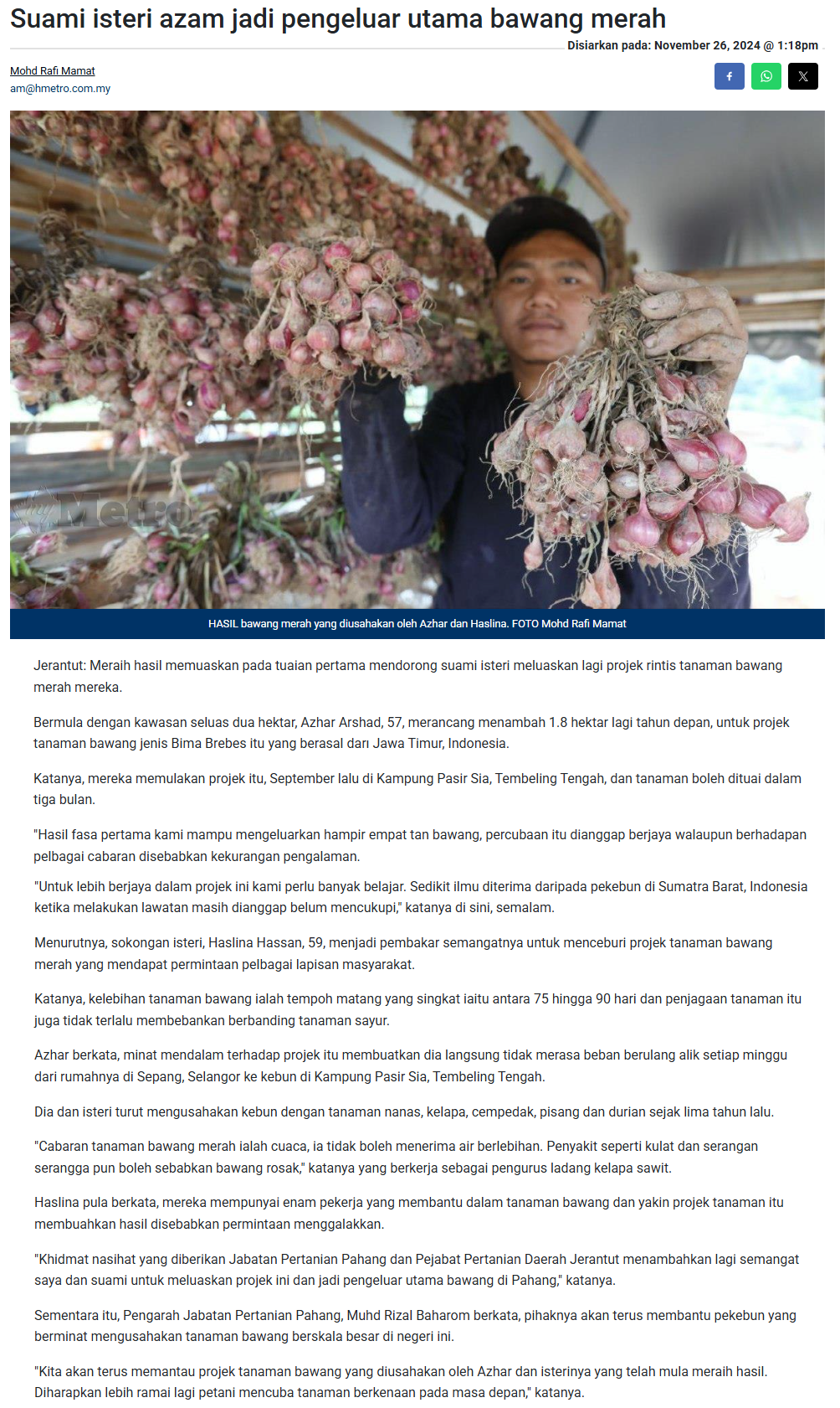 Mohd Rafi Mamat (2024) Suami isteri azam jadi pengeluar utama bawang merah. Harian Metro. |