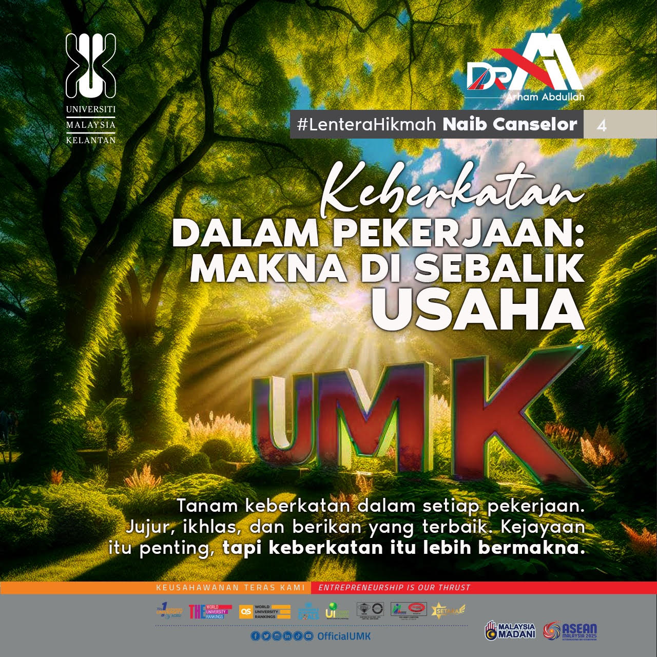 Arham Abdullah (2025) Lentera Hikmah Naib Canselor #4: Keberkatan dalam pekerjaan: makna di sebalik usaha. [Corporate Memory] |