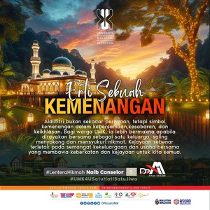 ERTI SEBUAH KEMENANGAN Assalamualaikum Warahmatullahi Wabarakatuh, Salam Malaysia MADANI, dan Salam Aidilfitri kepada seluruh warga UMK yang saya kasihi sekalian. Ramadan bakal berlalu dan Syawal kunjung tiba untuk diraikan. Datangnya begitu singkat, perginya begitu cepat. Apabila Ramadan meninggalkan kita, ia pasti akan kembali. Namun apakah kita masih ada di saat ia datang..? Perayaan Aidilfitri yang mendatang, sudah pasti diraikan dengan penuh kegembiraan, bukan sekadar sambutan atas kejayaan menempuh sebulan berpuasa. Ia adalah simbol kemenangan yang jauh lebih mendalam iaitu kemenangan dalam kebersamaan, kemenangan dalam kesabaran, dan kemenangan dalam usaha yang dilaksanakan dengan penuh keikhlasan. Dalam konteks kebersamaan seluruh warga UMK, Aidilfitri memberi makna yang lebih indah apabila kita merayakannya bersama, sebagai satu keluarga besar, saling memberi sokongan dan berkongsi kegembiraan dengan penuh rasa kasih sayang. Kemenangan yang kita sambut bukan hanya diukur dengan pencapaian peribadi, tetapi dengan kekuatan yang terbit daripada kebersamaan kita sebagai sebuah pasukan. Seperti sinar Ramadan yang menerangi hati, Syawal menyatukan kita dalam semangat kekeluargaan yang lebih padu dan erat. Setiap senyuman, setiap doa yang dipanjatkan, adalah bukti bahawa kemenangan sebenar terletak pada usaha bersama, pada sokongan yang diberikan, dan pada rasa hormat serta kasih yang kita bina sepanjang perjalanan ini. Kemenangan Aidilfitri ini bukan hanya terletak pada juadah yang lazat atau pakaian baru yang dipakai, tetapi pada keikhlasan hati kita yang penuh kesyukuran atas segala nikmat yang dikurniakan. Ia terletak pada kebersamaan yang tercipta dalam setiap usaha yang kita lakukan bersama sepanjang tahun. Seperti yang diajarkan oleh Rasulullah SAW, kemenangan yang sebenar adalah kemenangan yang lahir daripada jiwa yang bersih, yang diterangi oleh cahaya keikhlasan, yang menjadikan setiap langkah kita lebih bermakna dan penuh berkah. Sebagai warga UMK, kita telah melalui pelbagai cabaran dan dugaan bersama. Namun, setiap langkah kita dipenuhi dengan semangat yang tinggi untuk terus maju bersama-sama. Kemenangan yang kita raih pada Aidilfitri ini adalah kemenangan kebersamaan, di mana setiap seorang daripada kita, baik yang muda mahupun yang berpengalaman, turut serta dalam mencipta kejayaan untuk universiti ini. Itulah erti sebenar kemenangan yang bukan hanya untuk diri kita sendiri, tetapi untuk kesejahteraan dan kejayaan kita bersama, sebagai satu pasukan yang tidak pernah berputus asa. Dari Ibnu Abbas radhiyallahu ‘anhuma, Rasulullah SAW bersabda: "Ketika malam Idul Fitri tiba, maka malam itu disebut Lailatul Jaa'izah (Malam Pemberian Hadiah). Pada pagi harinya, Allah mengutus para malaikat ke seluruh bumi. Mereka turun dan berdiri di setiap jalan dan lorong, lalu berseru dengan suara yang didengar oleh semua makhluk kecuali jin dan manusia, ‘Wahai umat Muhammad, keluarlah menuju Tuhan yang Maha Pemurah, yang memberi pahala besar, dan mengampuni dosa-dosa besar.’ … Lalu Allah berfirman, ‘Wahai malaikat-Ku, saksikanlah bahwa Aku telah mengampuni mereka.’" Marilah kita terus merayakan Aidilfitri ini dengan penuh rasa syukur dan kegembiraan, bukan hanya untuk diri kita sendiri, tetapi untuk seluruh warga UMK. Semoga kemenangan ini membawa lebih banyak keberkatan, lebih banyak kejayaan, dan lebih banyak kebaikan yang kita nikmati bersama, sebagai satu keluarga yang saling menyokong dan menguatkan kesatuan 1 Hati 1 Jiwa dalam setiap langkah yang diambil. Selamat Hari Raya Aidilfitri Maaf Zahir dan Batin. Sekian, terima kasih. Ikhlas daripada ; Arham Abdullah |