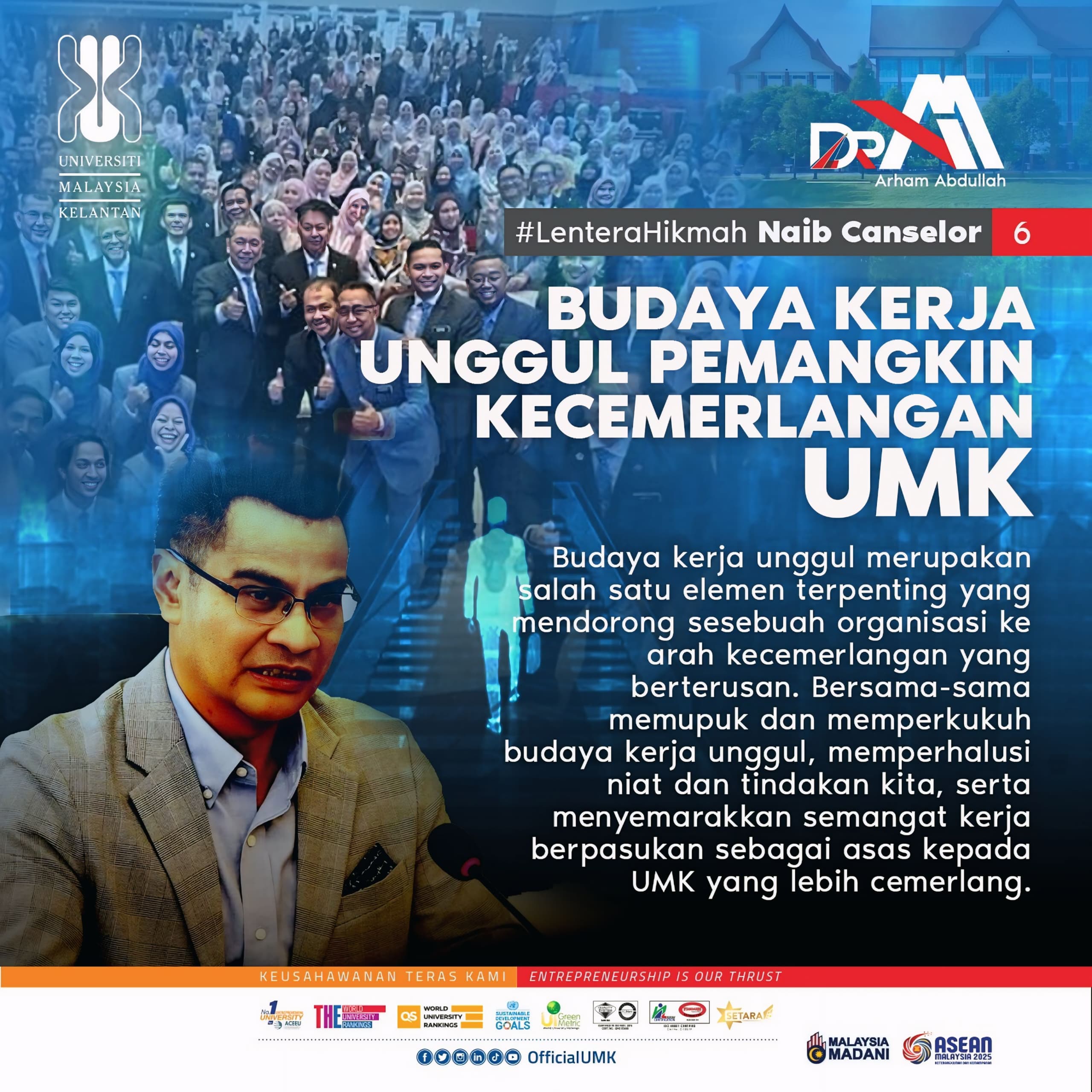 Arham Abdullah (2025) Lentera Hikmah Naib Canselor #6: Budaya kerja unggul pemangkin kecemerlangan UMK. [Corporate Memory] |
