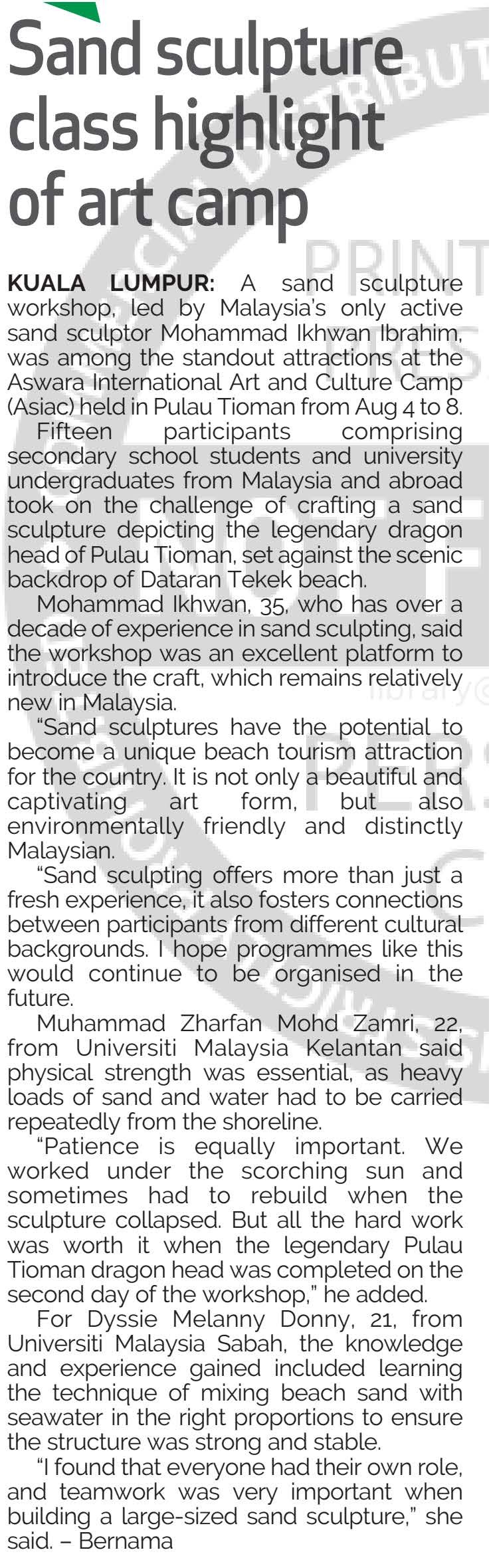 The Sun Malaysia (2025) Sand sculpture class highlight of art camp. The Sun (Malaysia). |