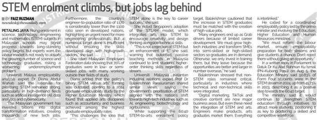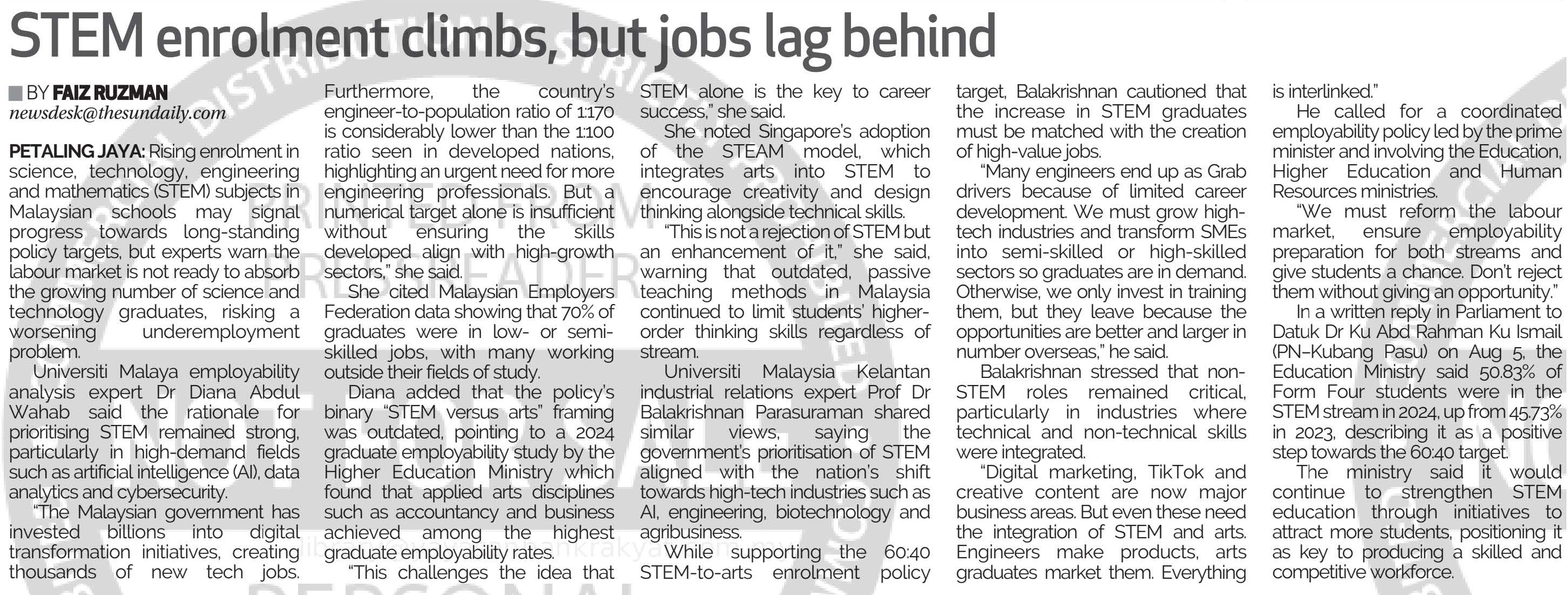 Faiz Ruzman (2025) STEM enrolment climbs, but jobs lag behind. The Sun (Malaysia). |