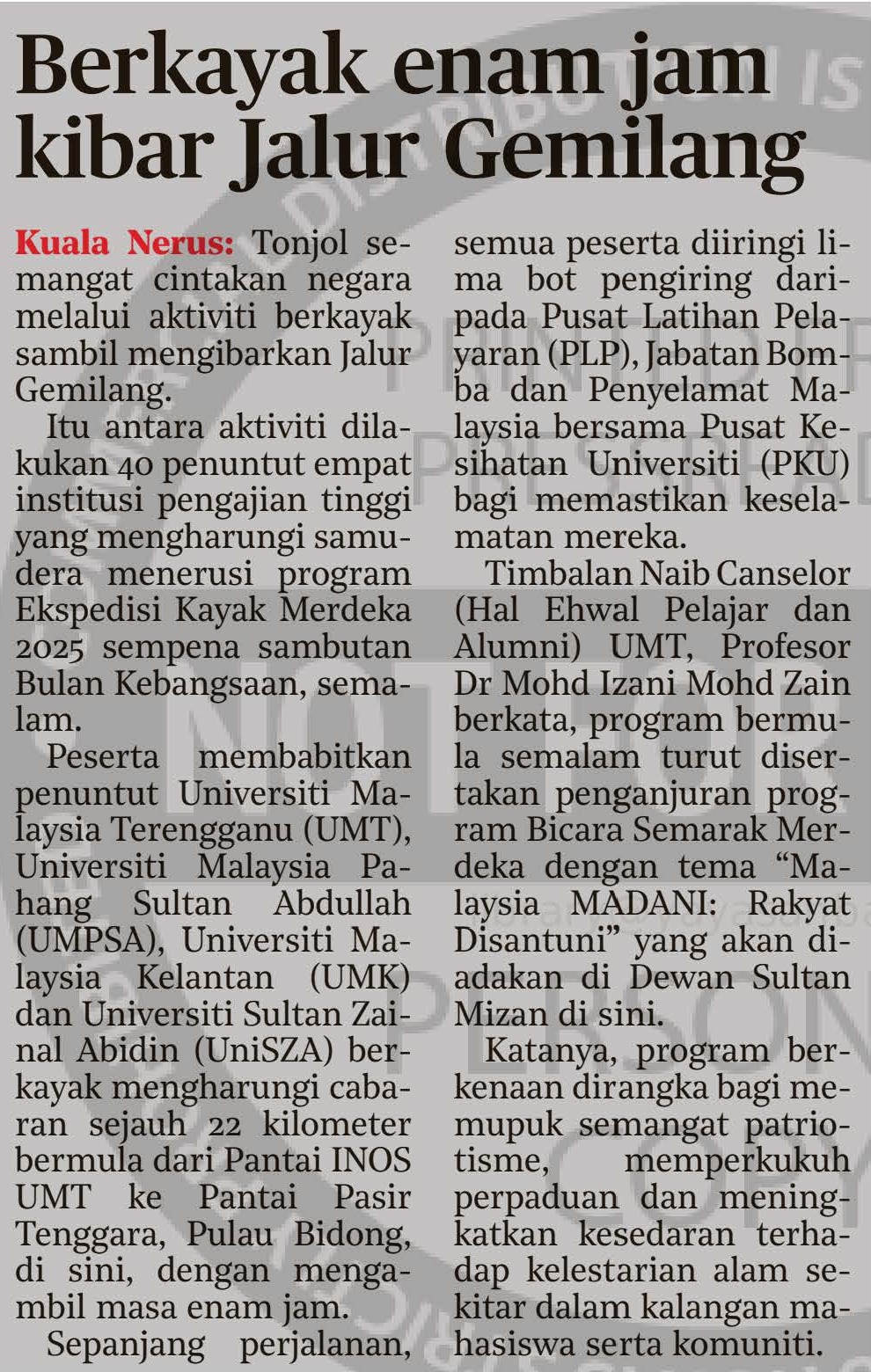 Harian Metro (2025) Berkayak enam jam kibar Jalur Gemilang. Harian Metro. |