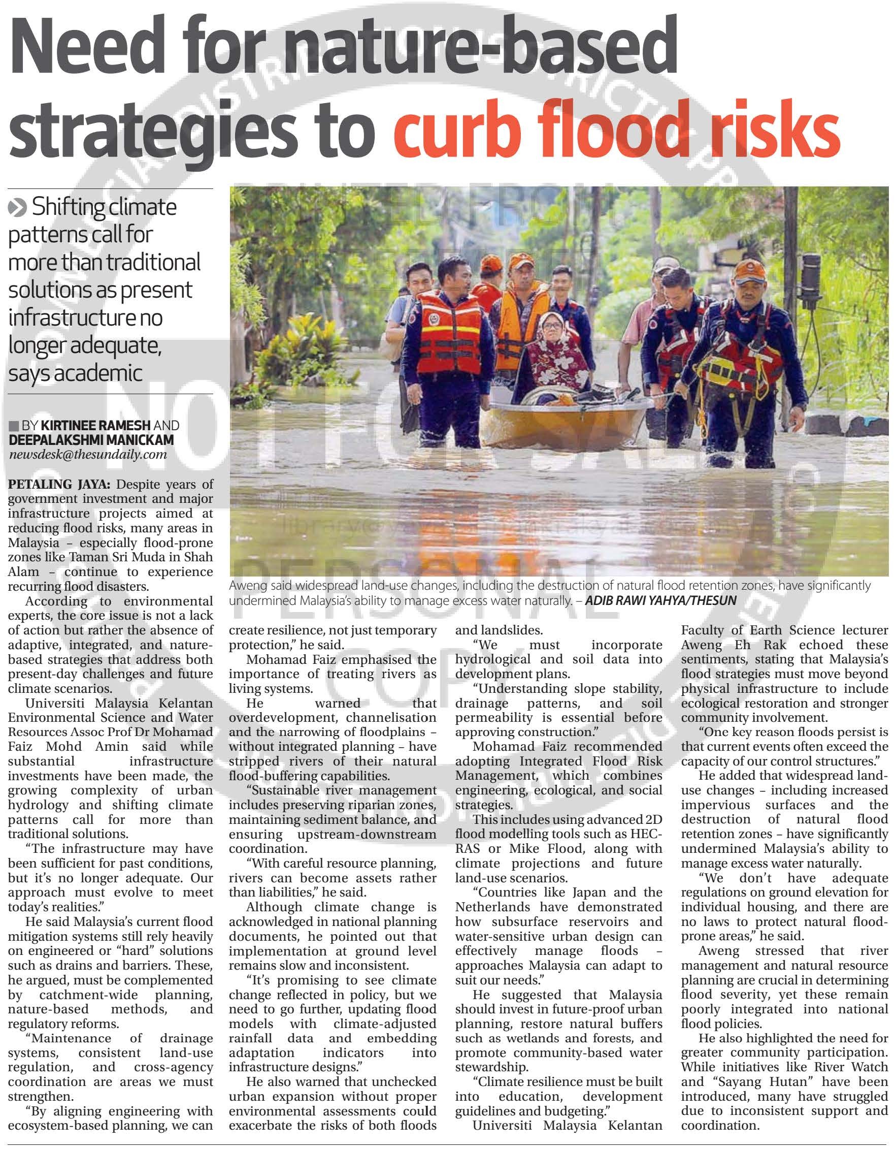 Ramesh, Kirtinee and Manickam, Deepalakshmi (2025) Need for nature-based strategies to curb flood risks. The Sun (Malaysia). |