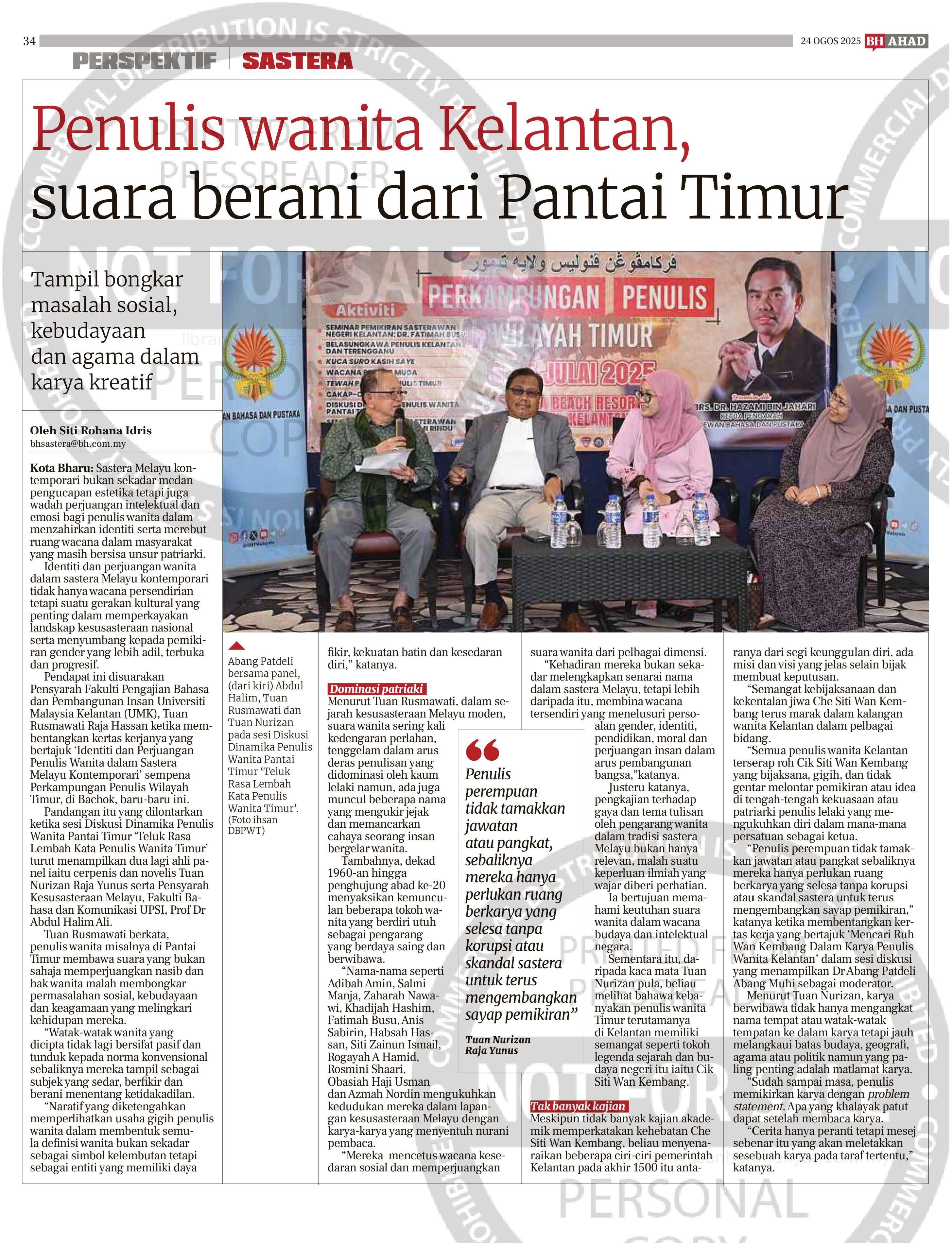 Idris, Siti Rohana (2025) Penulis wanita Kelantan, suara berani dari Pantai Timur. Berita Harian. |