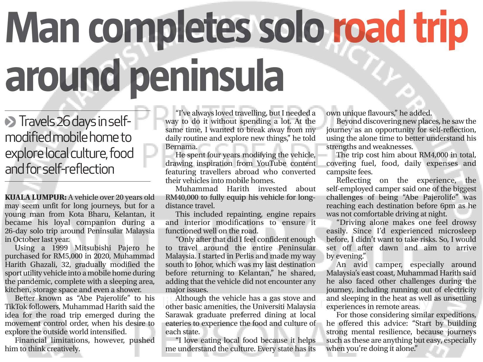 The Sun Malaysia (2025) Man completes solo road trip around peninsula. The Sun (Malaysia). |