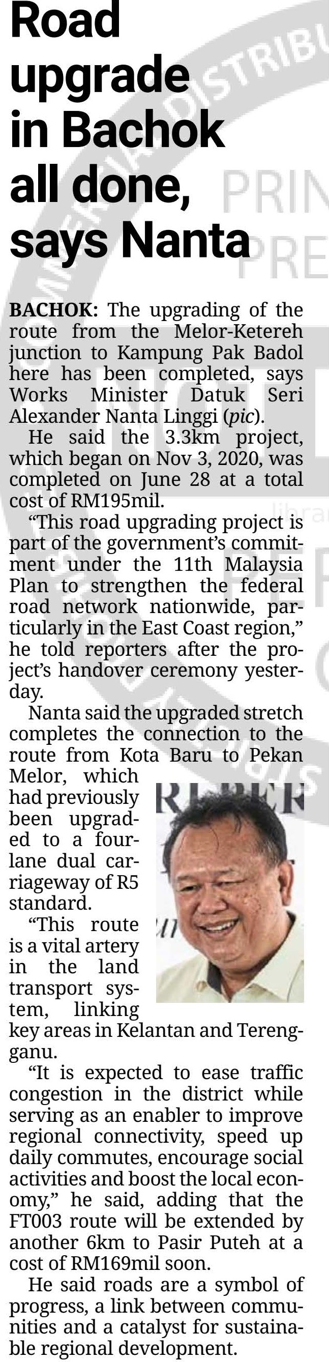 The Star Malaysia (2025) Road upgrade in Bachok all done, says Nanta. The Star Malaysia. |