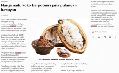 Harian Metro (2025) Harga naik, koko berpotensi jana pulangan lumayan. Harian Metro. |