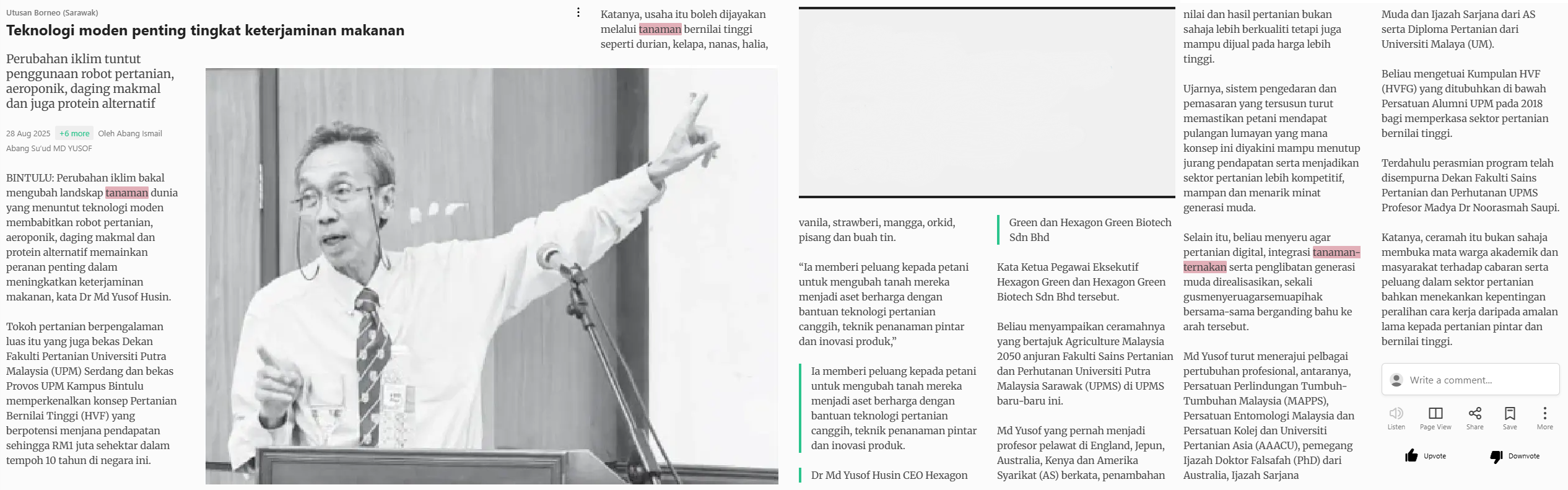 Abang Ismail Abang Su'ud (2025) Teknologi moden penting tingkat keterjaminan makanan. Utusan Borneo (Sarawak). |