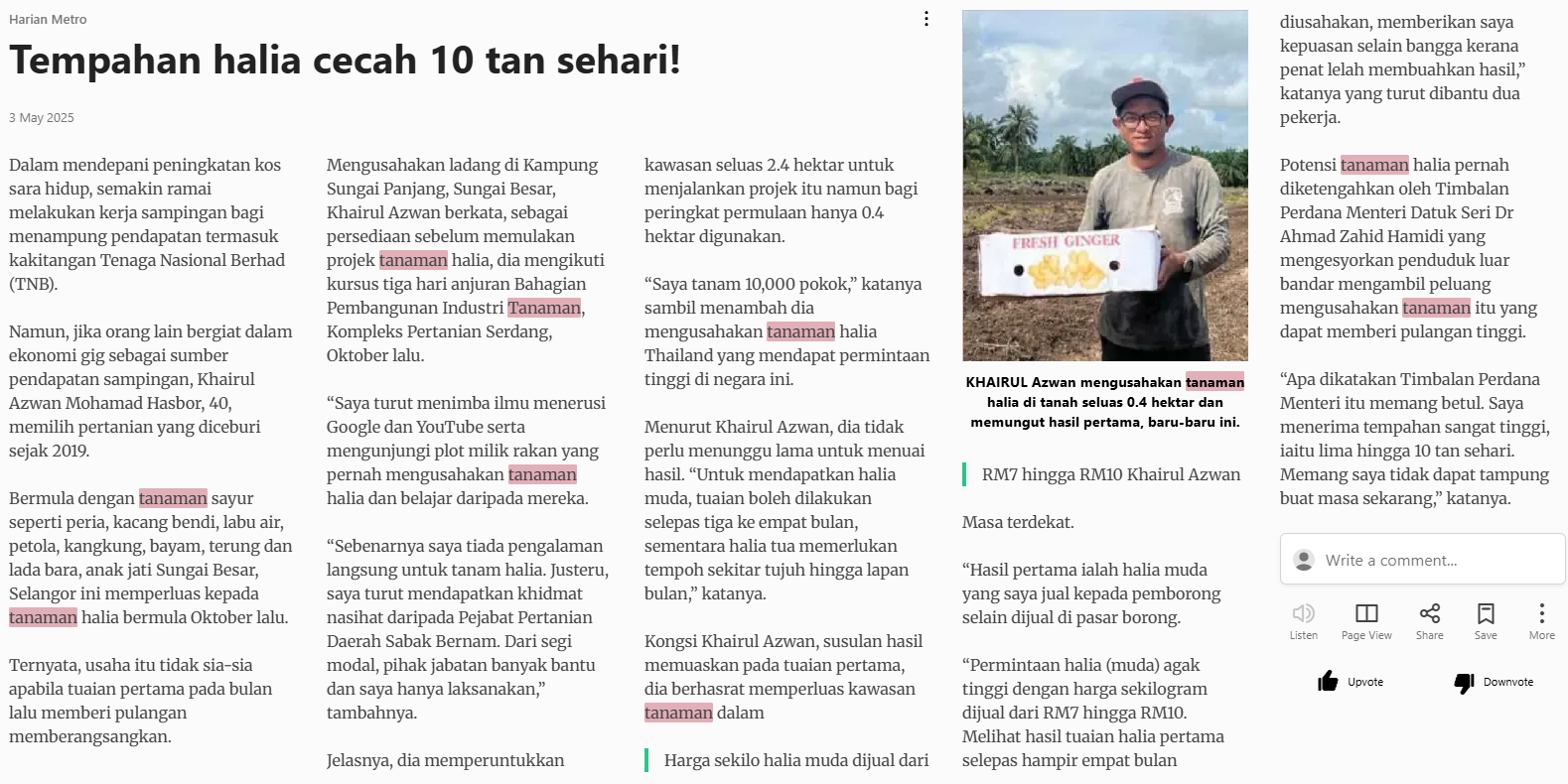 Harian Metro (2025) Tempahan halia cecah 10 tan sehari! Harian Metro. |