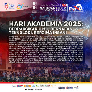 HARI AKADEMIA 2025: BERPAKSIKAN ILMU, BERNAFAS TEKNOLOGI, BERJIWA INSANI Assalamualaikum Warahmatullahi Wabarakatuh, Salam Malaysia MADANI dan Salam UMK4U 1 Hati 1 Jiwa. Warga UMK yang saya hormati, Baru-baru ini, UMK menyambut Hari Akademia 2025 peringkat Universiti Malaysia Kelantan (UMK). Justeru, saya ingin mengajak seluruh warga universiti untuk berpandangan jauh dengan menjadikan Kecerdasan Buatan (AI) sebagai denyut nadi baharu dalam ekosistem UMK. Sedar atau tidak, bergerak dalam arus perubahan yang pantas. Keupayaan insan tidak lagi diukur hanya melalui pena dan kertas, tetapi melalui kebijaksanaan dalam menguasai kecerdasan digital (Digital Intelligence), keupayaan menganalisis data, dan kecekapan berfikir secara strategik dalam menghadapi ketidaktentuan dunia. Inilah kecekapan baharu yang disebut sebagai Digital Agility iaitu keupayaan untuk menyesuaikan diri dan memimpin perubahan dalam era digital. Dahulu, ukuran literasi dinilai melalui keupayaan membaca dan menulis. Namun hari ini, makna literasi telah berkembang jauh lebih luas. Literasi masa depan menuntut kita menguasai AI, berfikir berasaskan data (data-driven thinking) dan memiliki keupayaan beradaptasi tinggi dalam menghadapi perubahan. Firman Allah SWT dalam Surah al-Mujadalah ayat 11: Janji Allah ini wajar menjadi asas kepada UMK dalam usaha mengintegrasikan AI dalam pendidikan tinggi. Di UMK, integrasi ini digerakkan melalui Fakulti Sains Data dan Komputeran (FSDK) iaitu fakulti pertama seumpamanya di Malaysia yang meneroka bidang Digital Entrepreneurship dan Capstone Projects berasaskan data serta disokong oleh Institute for Artificial Intelligence and Big Data (AIBIG) sebagai pusat kecemerlangan ilmu dan inovasi. Sinergi antara FSDK dan AIBIG membentuk UMK sebagai model universiti masa depan yang melahirkan graduan berjiwa insani, berilmu dan dan berintegriti dalam mendepani dunia digital. Saya percaya, pengadaptasian AI bukan untuk menggantikan manusia, tetapi untuk memperkukuh kesungguhan, meningkatkan kecekapan dan memperhalus ketelitian dalam melaksanakan amanah ilmu. Namun begitu, kemajuan tidak hanya bergantung kepada kecerdasan teknologi, tetapi juga kepada kecerdasan nilai dan akhlak. Teknologi mampu mempercepatkan langkah kemajuan, tetapi hanya akhlak mampu memastikan kemajuan itu membawa manfaat, keberkatan dan kesejahteraan kepada seluruh manusia. Sempena Hari Akademia 2025 ini, marilah kita memperbaharui tekad untuk menjadikan ilmu sebagai pembimbing perubahan, teknologi sebagai alat memperkasa ummah dan akhlak sebagai panduan agar setiap pencapaian kita terus berakar pada nilai dan keberkatan. Sekian, terima kasih Ikhlas, |