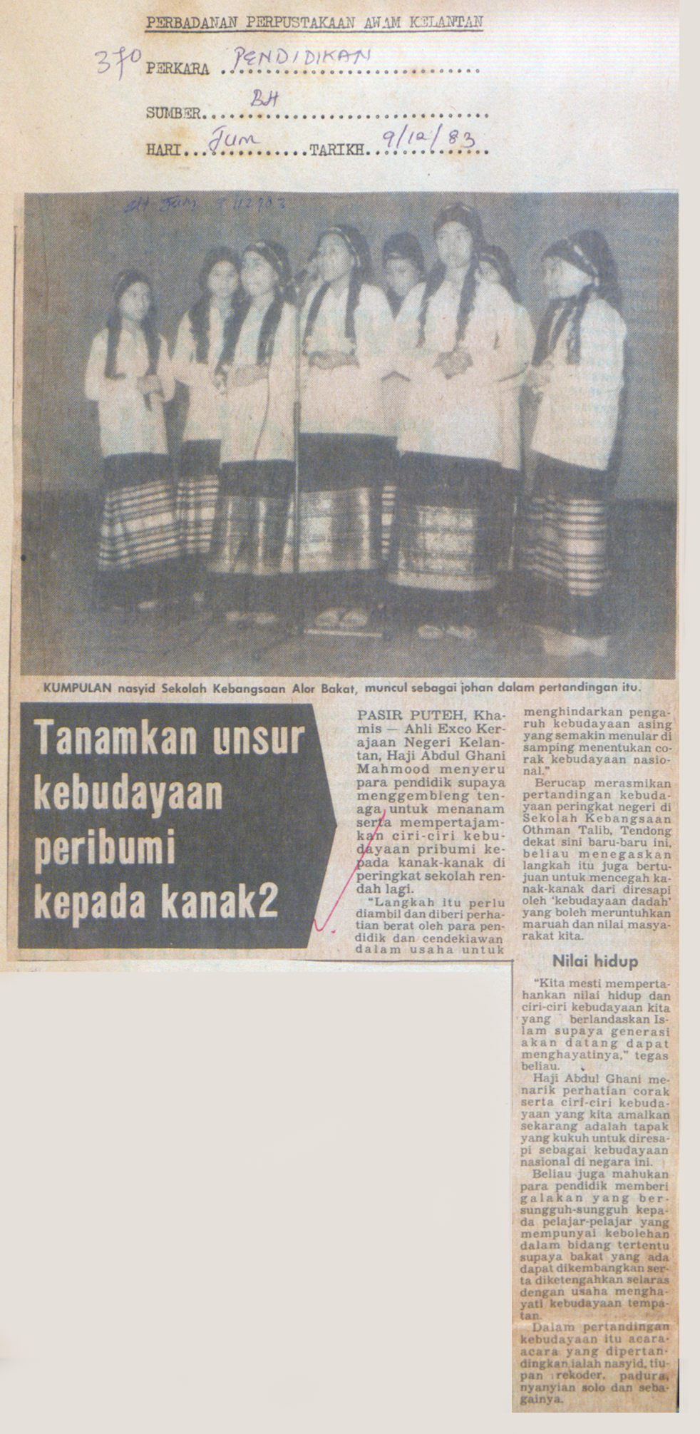Utusan Malaysia (1983) Tanamkan unsur kebudayaan peribumi kepada kanak2. Utusan Malaysia. |