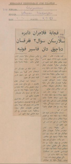 Utusan Malaysia (1983) Pejabat pelajaran daerah selaraskan soal2 peperiksaan di bachok dan pasir putih. Utusan Malaysia. |