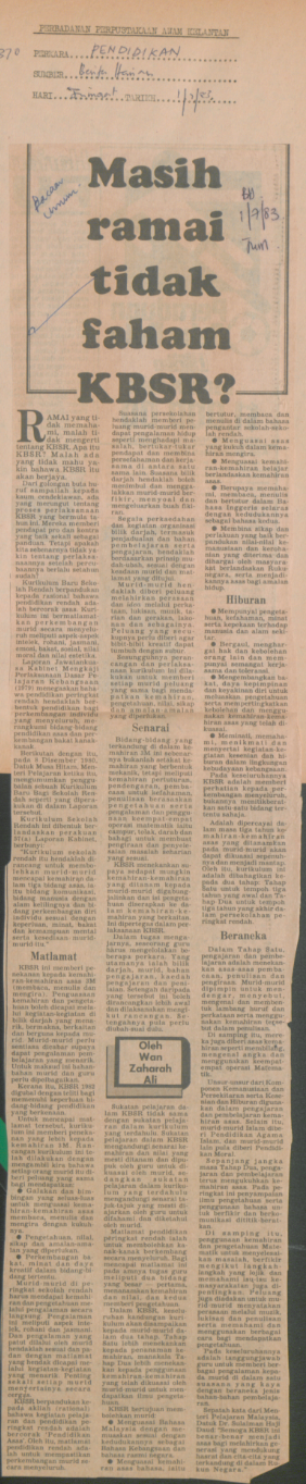 Berita Harian (1983) Masih ramai tidak faham KBSR? UNSPECIFIED. |