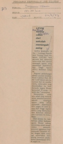Utusan Malaysia (1983) LPYIK terima calon dari sekolah menengah asing. UNSPECIFIED. |
