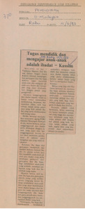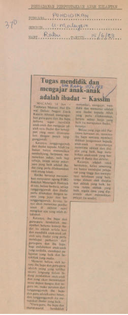 Utusan Malaysia (1983) Tugas mendidik dan mengajar anak-anak adalah ibadat. UNSPECIFIED. |