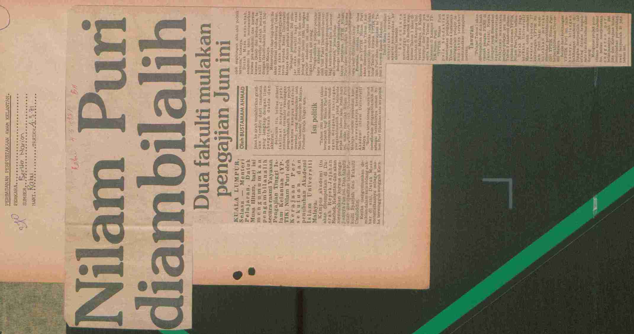 Berita Harian (1981) Nilam Puri diambilalih. Berita Harian. |