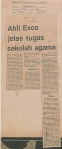 Berita Harian (1983) Ahli exco jelas tugas sekolah agama. UNSPECIFIED. |