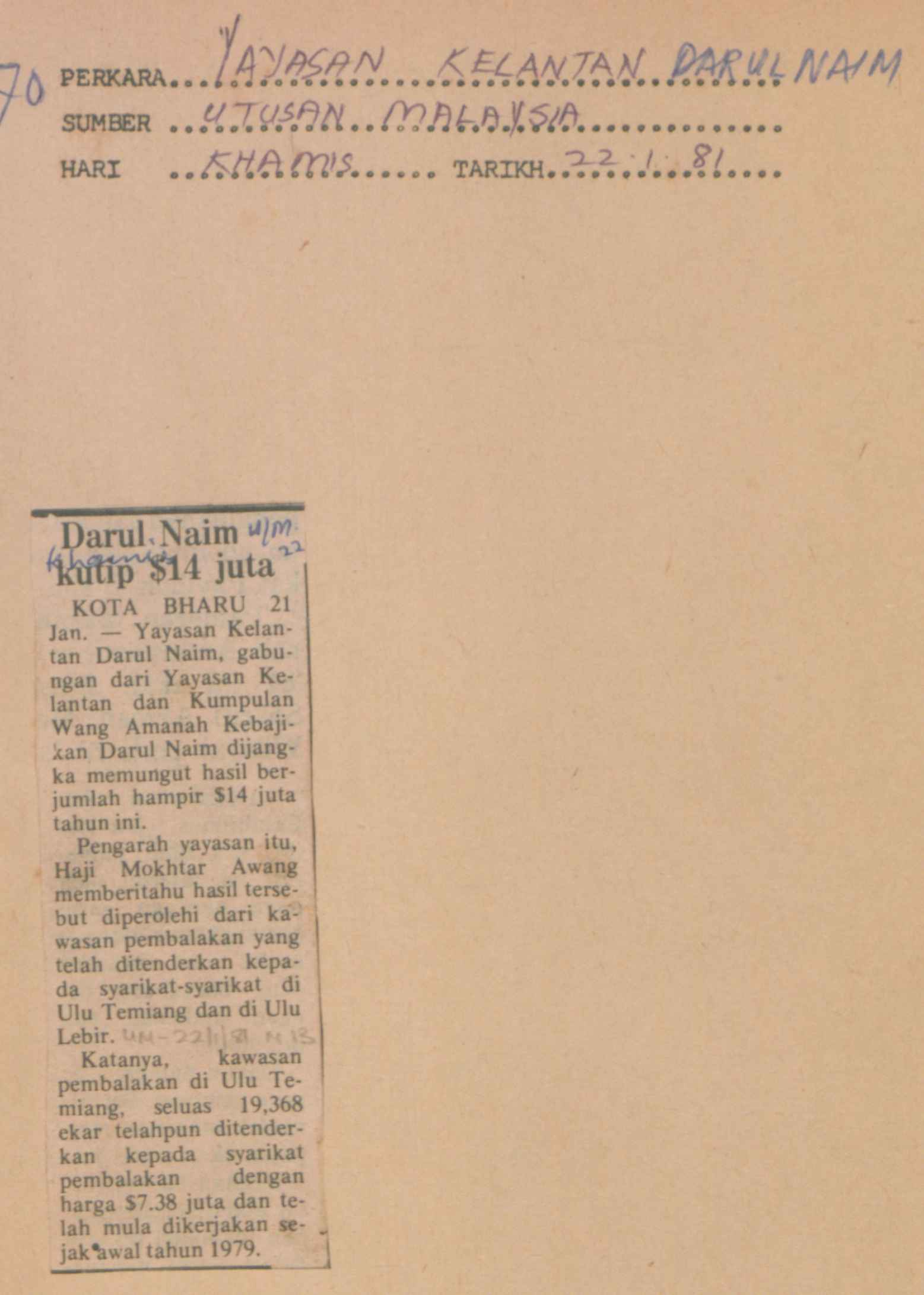 Utusan Malaysia (1981) Darul Naim kutip $14 juta. Utusan Malaysia. |