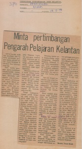 Utusan Malaysia (1978) Minta pertimbangan pengarah pelajaran Kelantan. UNSPECIFIED. |