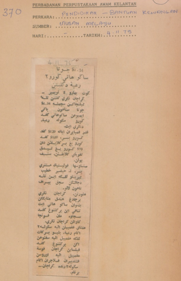 Utusan Malaysia (1975) $1.34 juta sagu hati guru2 rakyat di Kelantan. Utusan Malaysia. |