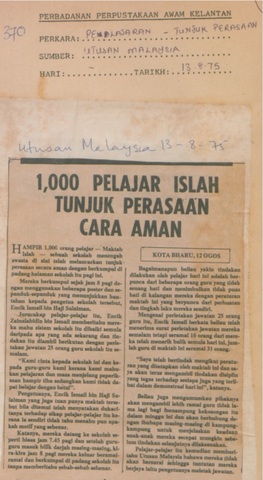 Utusan Malaysia (1975) 1000 pelajar islah tunjuk perasaan cara aman. Utusan Malaysia. |