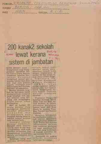 Berita Harian (1981) 200 kanak2 sekolah lewat kerana sistem di jambatan. Berita Harian. |