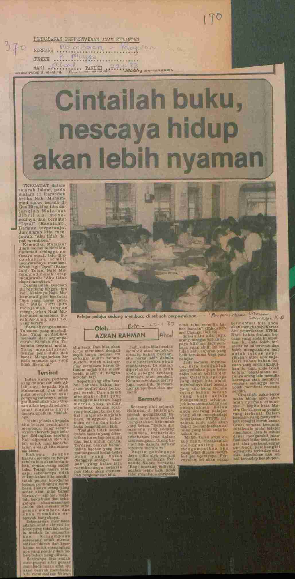 Berita Mingguan (1983) Cintailah buku, nescaya hidup akan lebih aman. Berita Mingguan. |