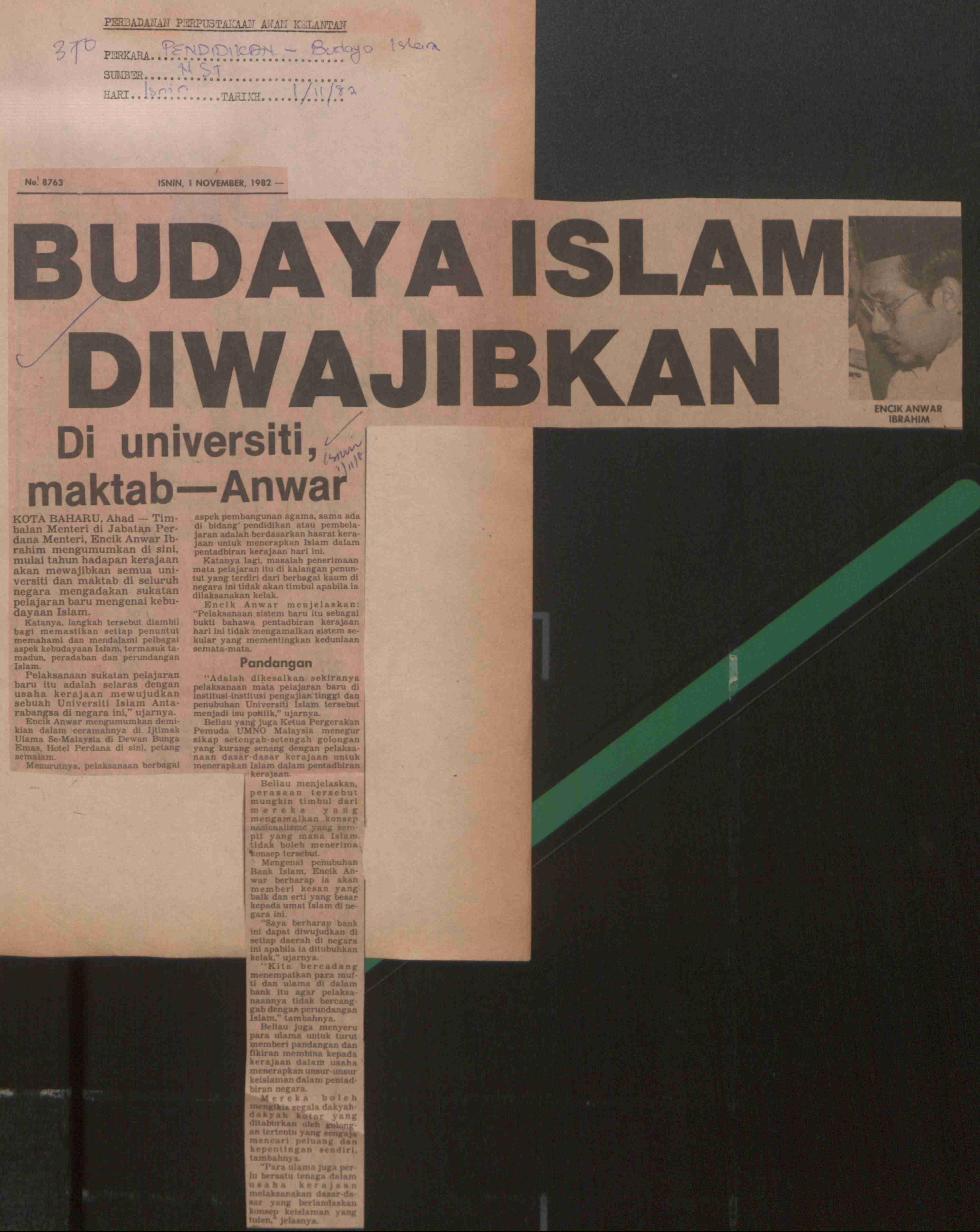 New Straits Times (1982) Budaya Islam diwajibkan di Universiti Maktab-Anwar. New Straits Times. |