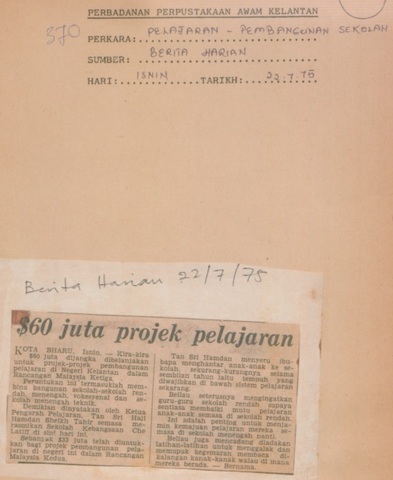 Berita Harian (1975) $60 juta projek pelajaran. Berita Harian. |