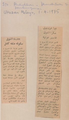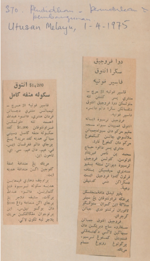 Utusan Malaysia (1975) $1200 untuk Sekolah Menengah Kamil. Utusan Malaysia. |